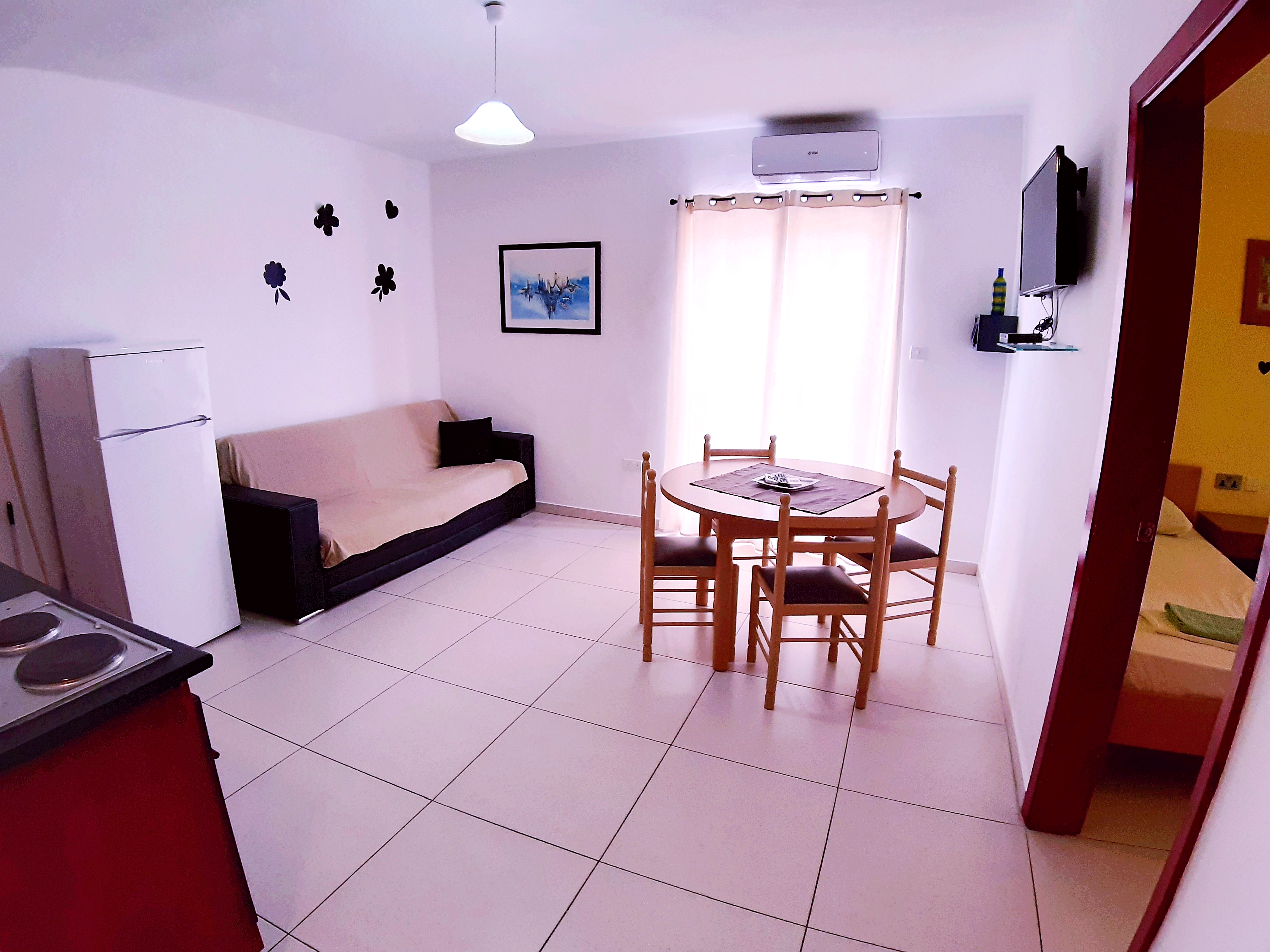 Set in a lively area popular with young people, each apartment is equipped with a kitchen and a living/dining area with cable TV including 38 digital channels and 61 radio stations.